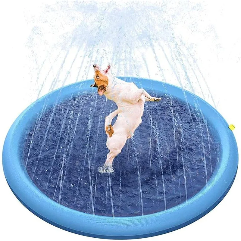 170cm Summer Pet Swimming Pool Dog Splash Sprinkler Pad Inflável Mat Cooling Dogs Outdoor Play Water Mat Brinquedos para Pet Children